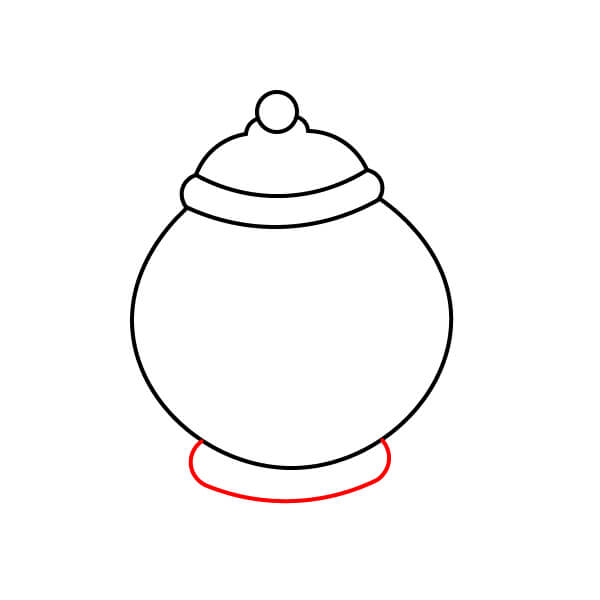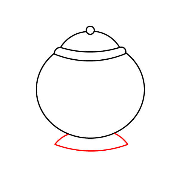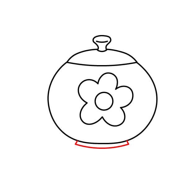Bên dưới phần thân chính, vẽ một hình bầu dục ngắn, rộng, cong cho đế hoặc chân của ấm trà.