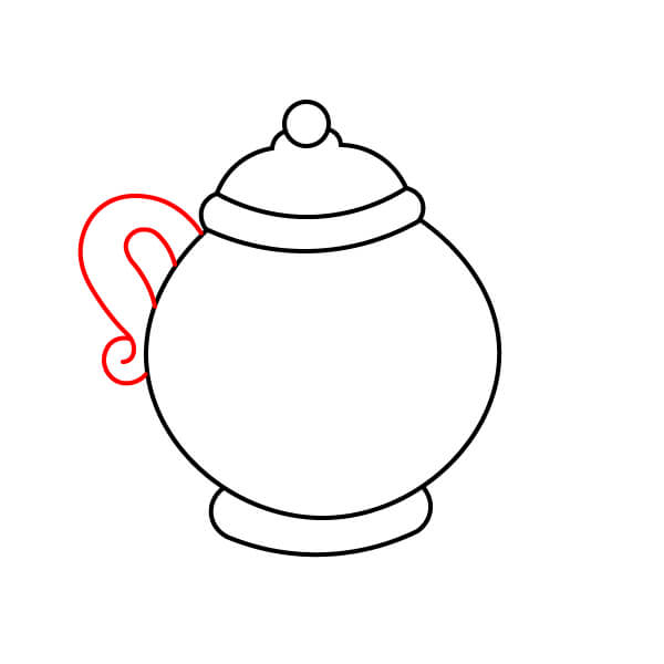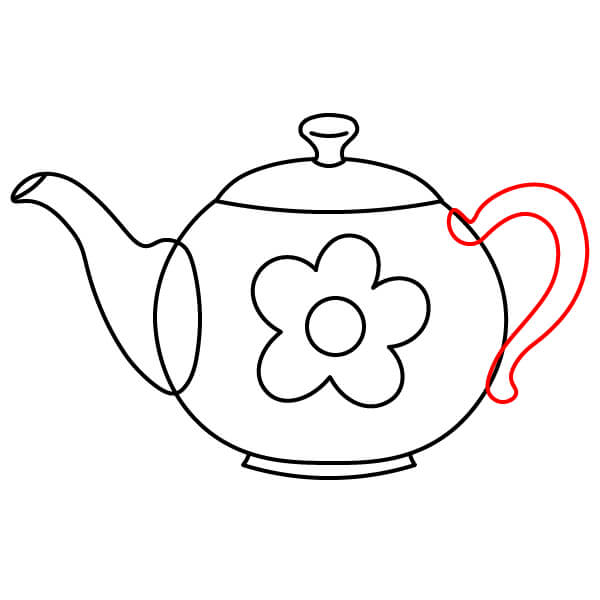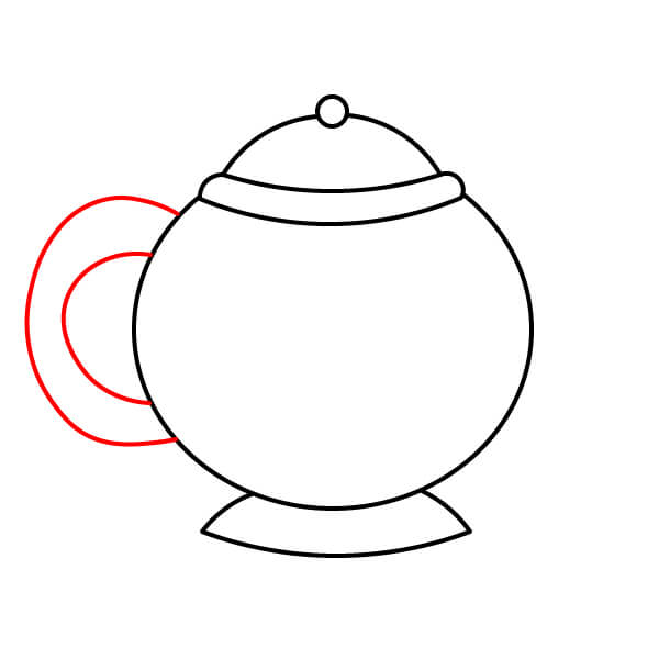 Ở phía bên phải của thân ấm trà, vẽ quai. Đây là một hình chữ C đơn giản, tròn trịa được tạo thành từ hai đường thẳng song song.