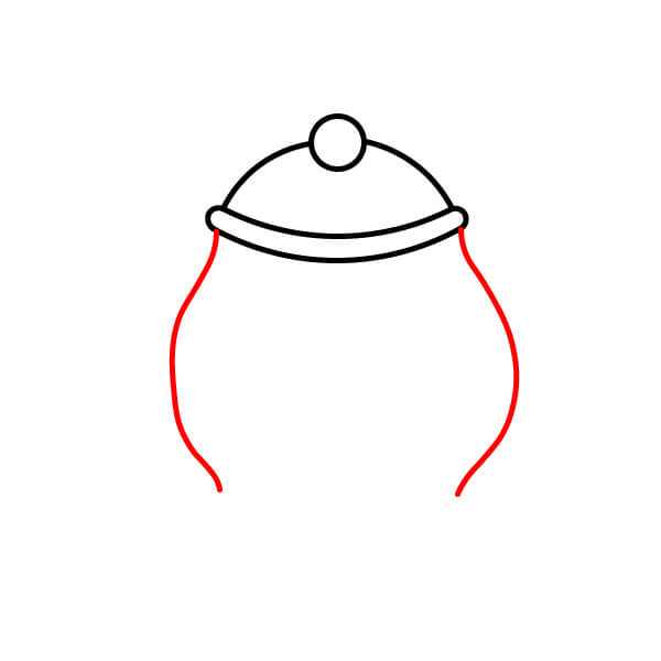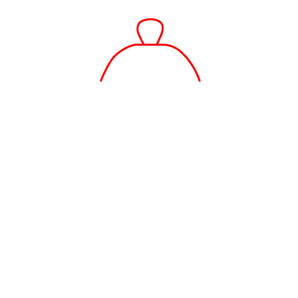 Từ chân núm, vẽ hai đường cong kéo dài ra ngoài và xuống dưới để tạo thành hình vòm của nắp.