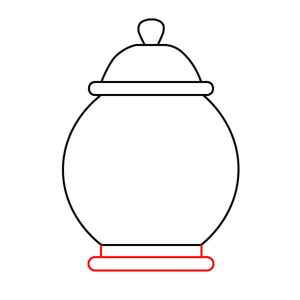 Bên dưới phần nắp ấm, vẽ hai đường thẳng nằm ngang với hai đầu hơi tròn. Điều này tạo thành phần đế của nắp.