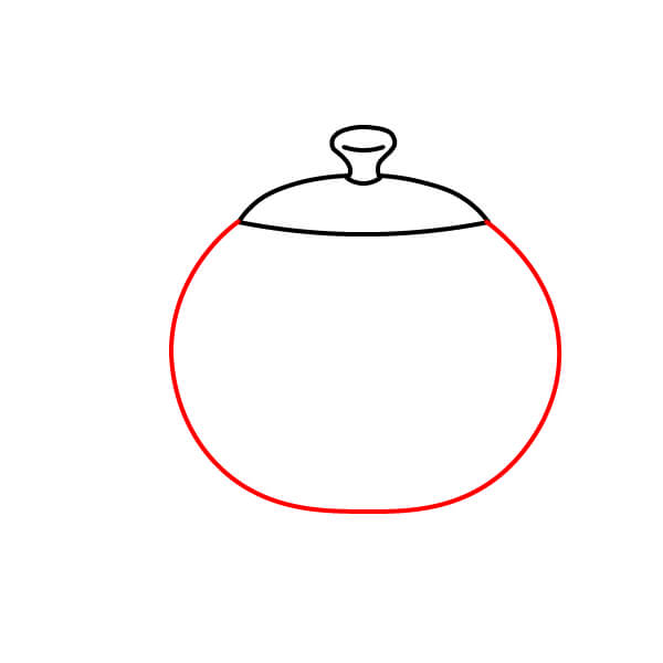 Vẽ một vòng tròn lớn hoặc một hình bầu dục hơi dẹt bên dưới đáy nắp. Tạo thành thân chính của ấm trà.