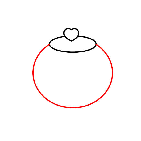 Bên dưới hình trái tim, vẽ một hình bầu dục phẳng.