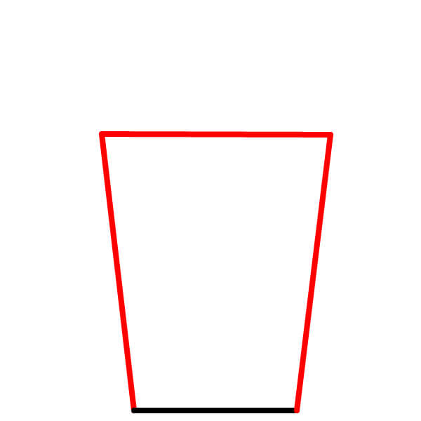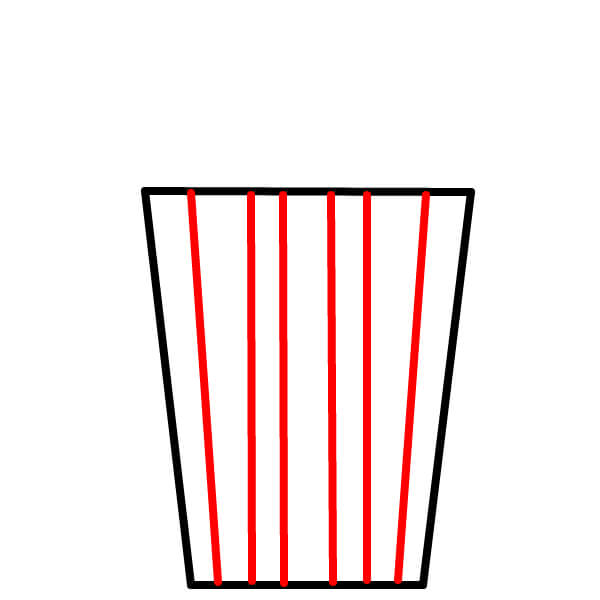 Bắt đầu bằng cách vẽ hình dạng cơ bản của hộp đựng bỏng ngô. Nó nên trông giống hình thang, có đáy phẳng và phần miệng trên rộng hơn một chút.