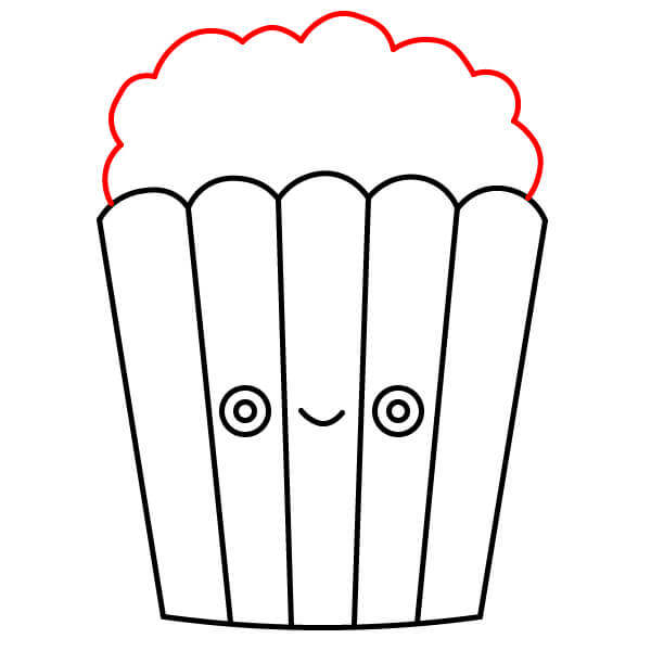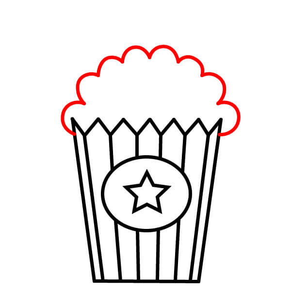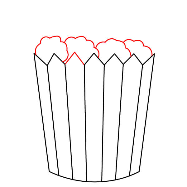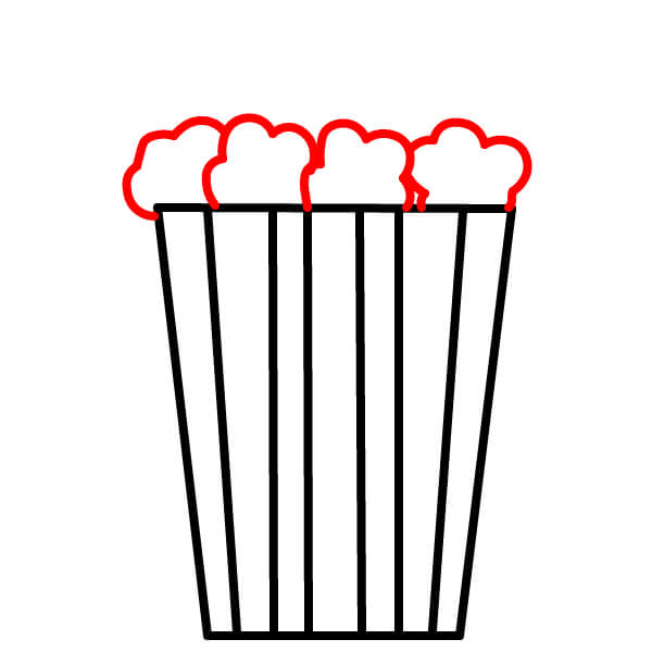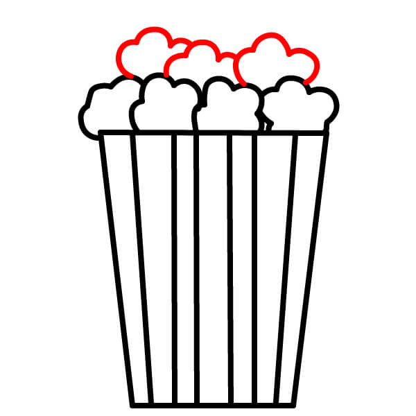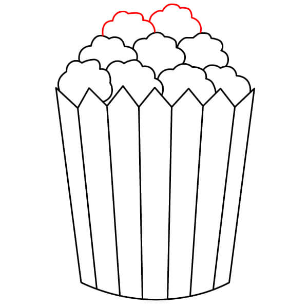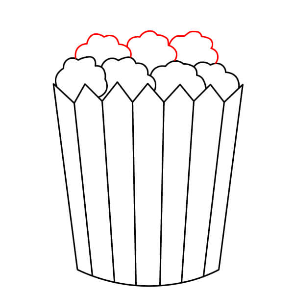 Ở phía trên miệng hộp, vẽ một vài hình mềm và bồng bềnh giống như đám mây xếp lại với nhau. Đây sẽ là phần bỏng ngô tràn ra khỏi hộp.
