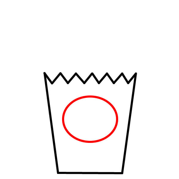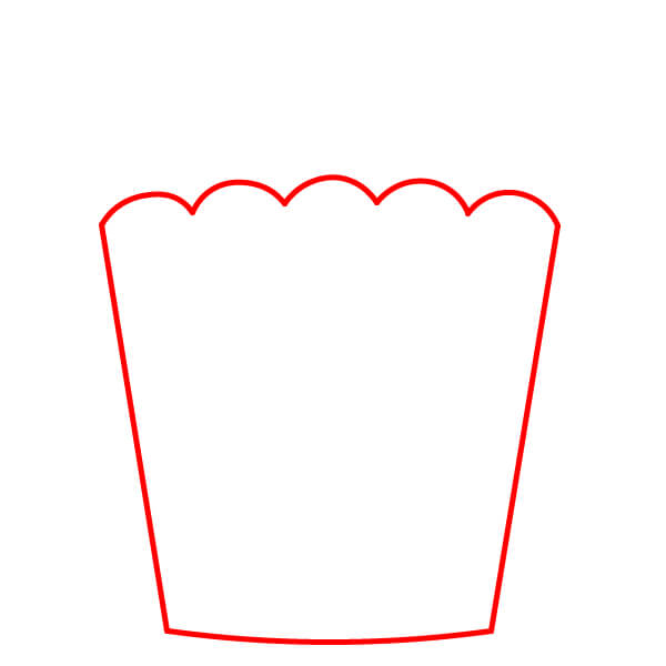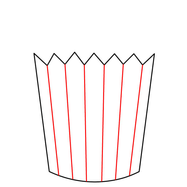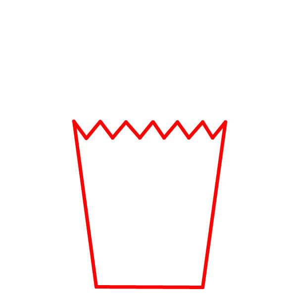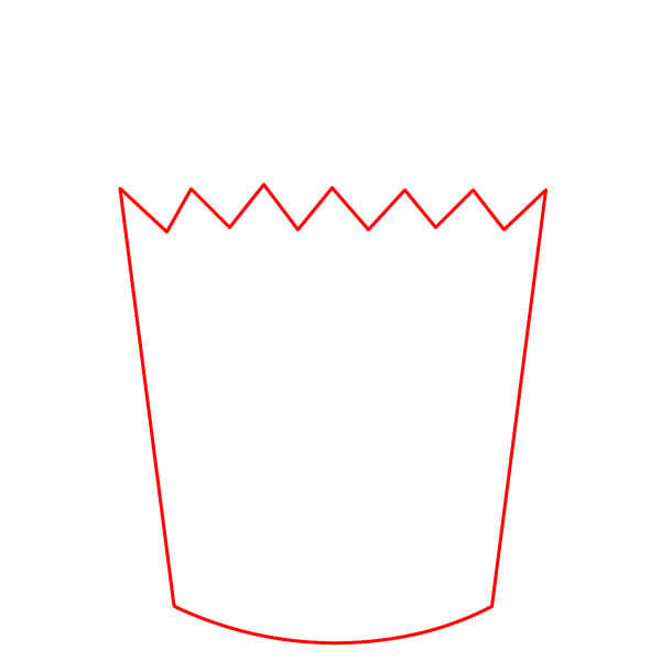 Bắt đầu bằng cách vẽ hình dạng cơ bản của hộp đựng bỏng ngô. Nó giống hình thang, nhưng đường đáy hơi cong và phía trên là đường zíc zắc tạo thành các đỉnh và rãnh nhọn.