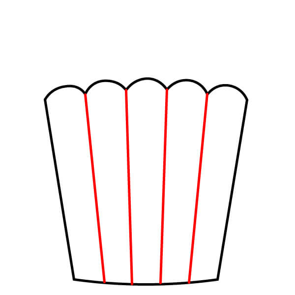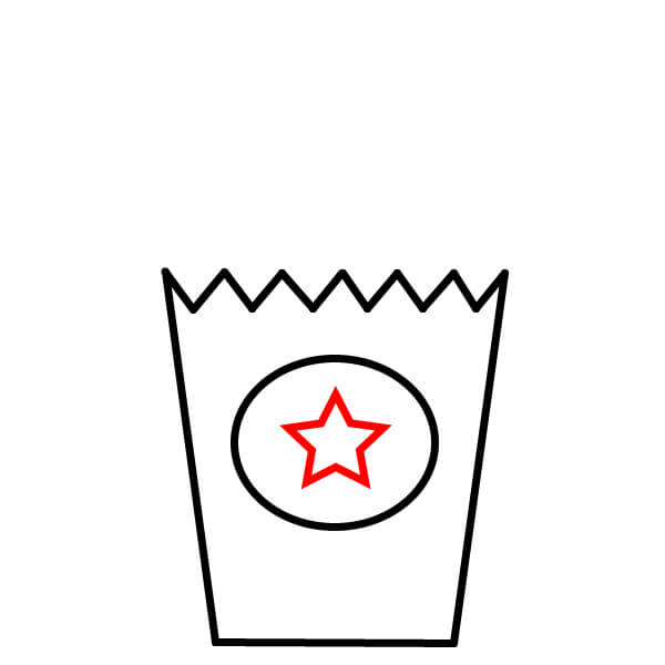 Bắt đầu bằng cách vẽ hình dạng chính của hộp bỏng ngô. Đó là hình thang, có đáy hơi congmép trên lượn sóng giống hình vỏ sò, tạo cảm giác vui nhộn.