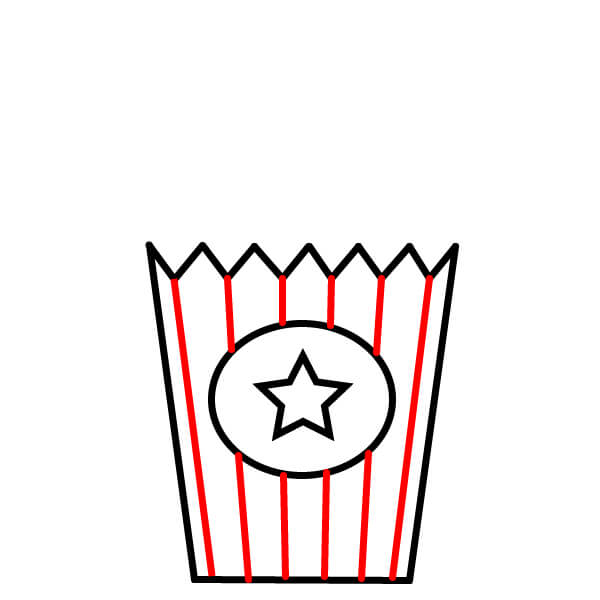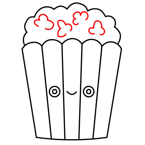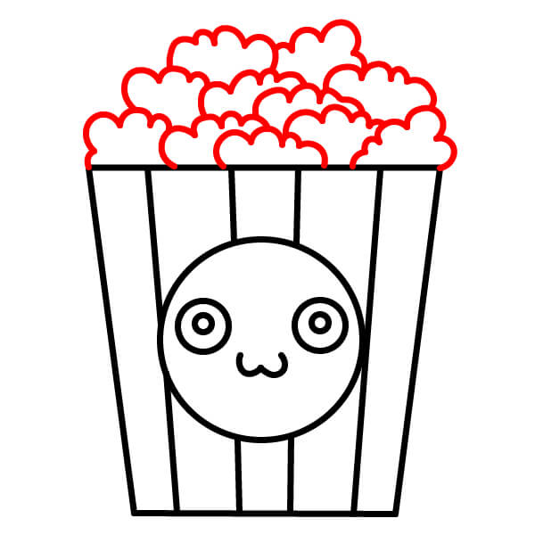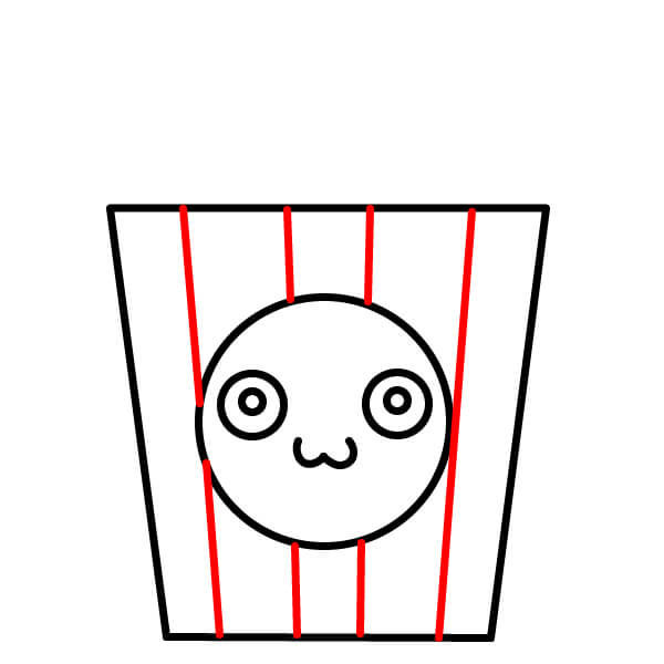 5. Hãy cùng vẽ một chiếc xô đựng bỏng ngô đáng yêu có khuôn mặt.