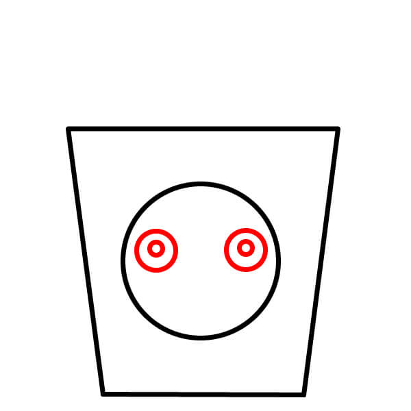 Bây giờ hãy vẽ khuôn mặt! Vẽ hai hình tròn nhỏ làm mắt. Bên trong mỗi mắt, vẽ một hình tròn nhỏ hơn để làm con ngươi.