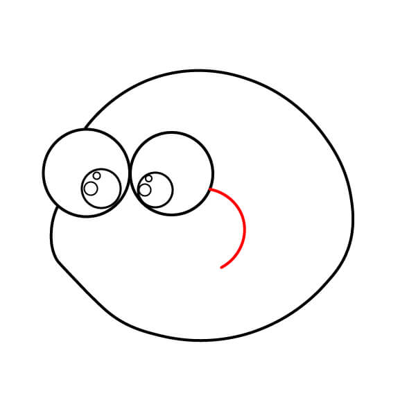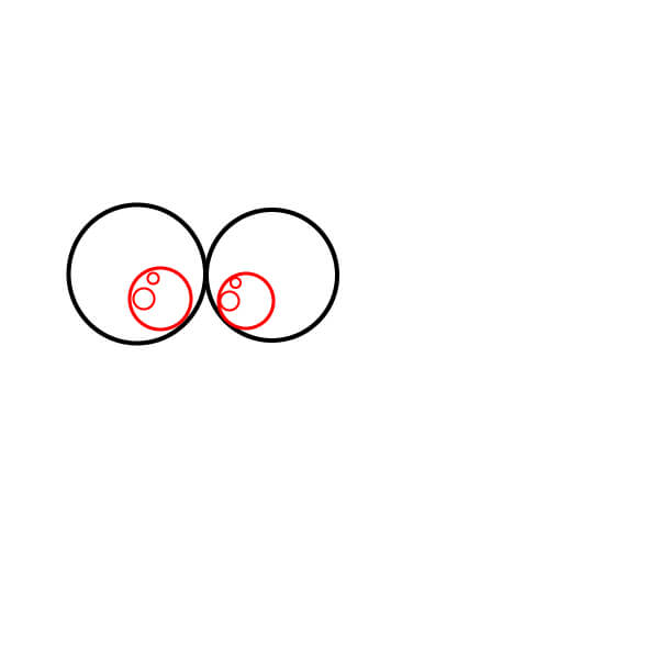 Bên trong mỗi hình tròn lớn, vẽ một hình tròn nhỏ hơn và thêm một hình tròn nhỏ nữa bên trong để tạo mống mắt và con ngươi.