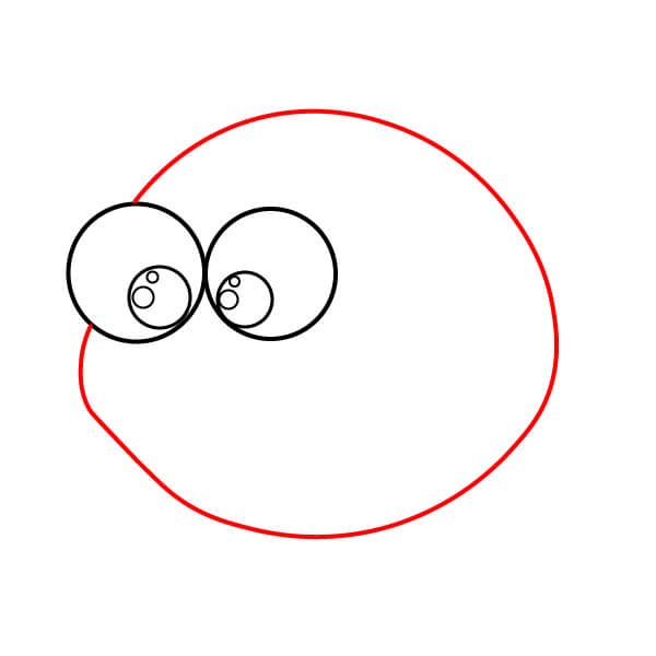 Bắt đầu bằng cách vẽ hai hình tròn chồng lên nhau để tạo hình dạng cơ bản của đôi mắt.