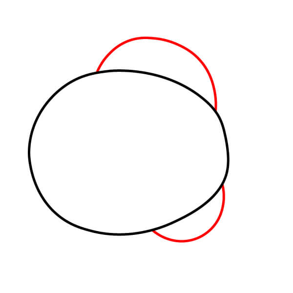 Bắt đầu bằng cách vẽ một hình bầu dục lớn nhưng chưa khép kín hoàn toàn. Chừa một khoảng trống nhỏ ở phía bên trái để nối với phần đuôi.