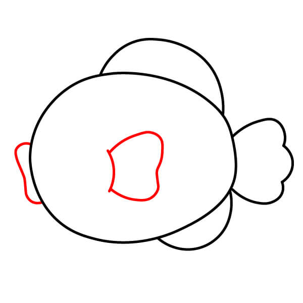 Ở phía bên phải thân cá (gần trung tâm), vẽ thêm một hình bo tròn khác để làm vây ngực bên phải và thêm các đường ngắn bên trong.