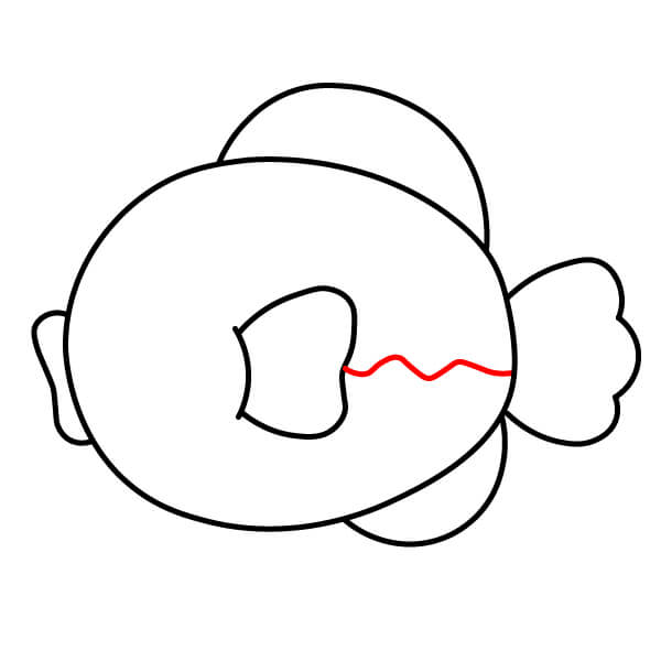Từ khoảng trống bên trái của thân cá, vẽ một hình lượn sóng giống chiếc quạt để tạo vây đuôi.