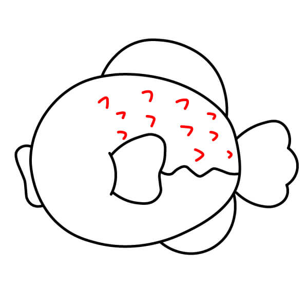 Bên trong mỗi vây, vẽ vài đường cong ngắn song song. Những đường này giúp tạo chi tiết và làm cho vây trông giống các tia vây.