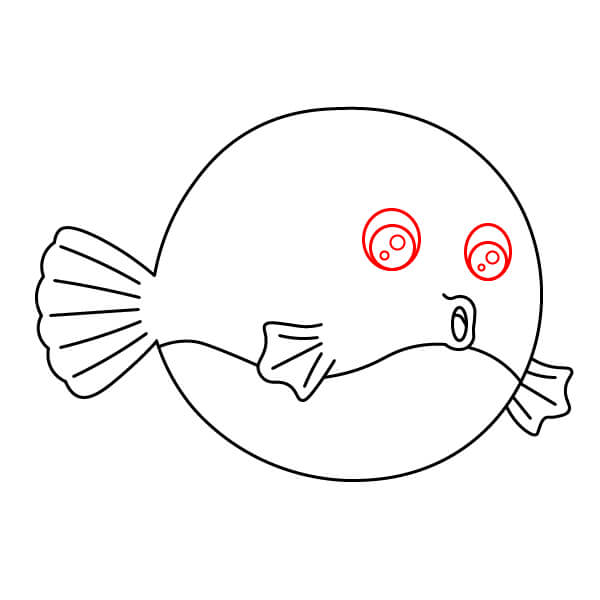 Vẽ một đường cong lớn gần giống hình tròn bao quanh đôi mắt. Đây sẽ là phần thân chính của cá nóc.