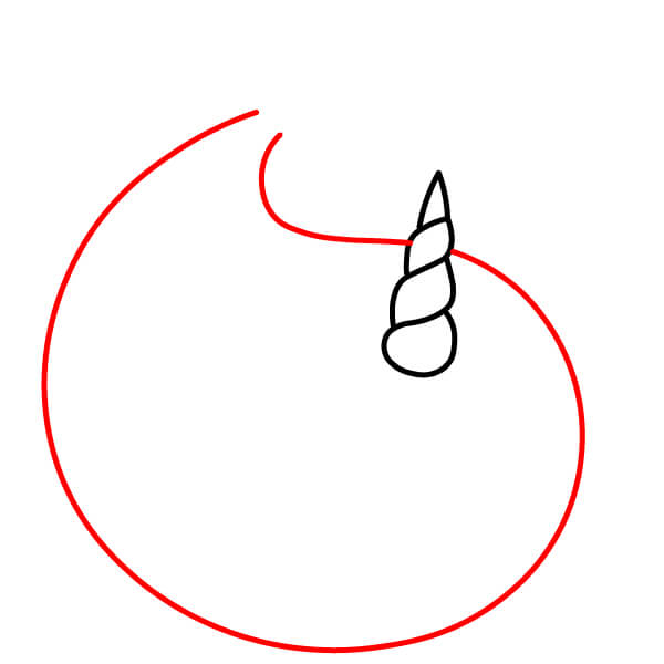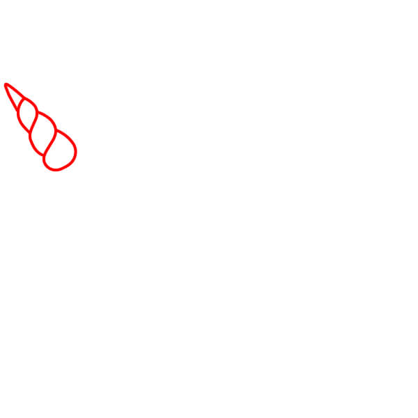 Bắt đầu bằng cách vẽ chiếc sừng của narwhal. Hãy vẽ giống như sừng kỳ lân xoắn với ba đoạn cong.