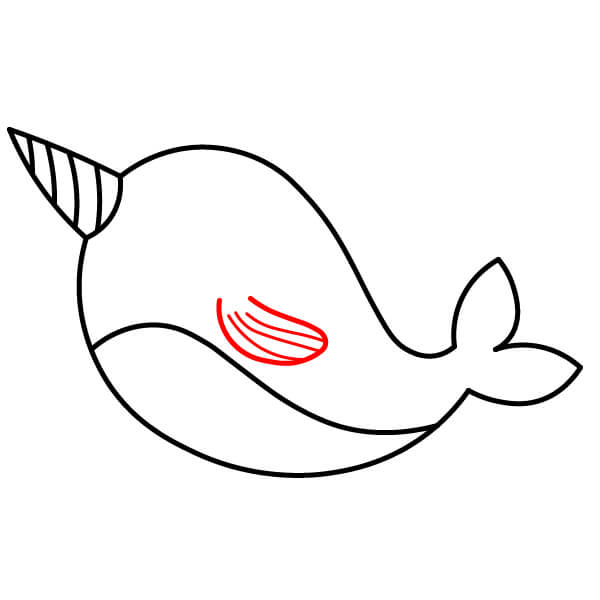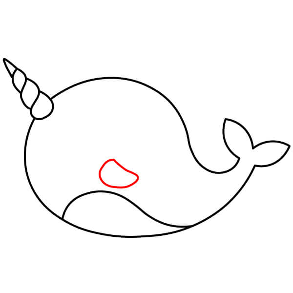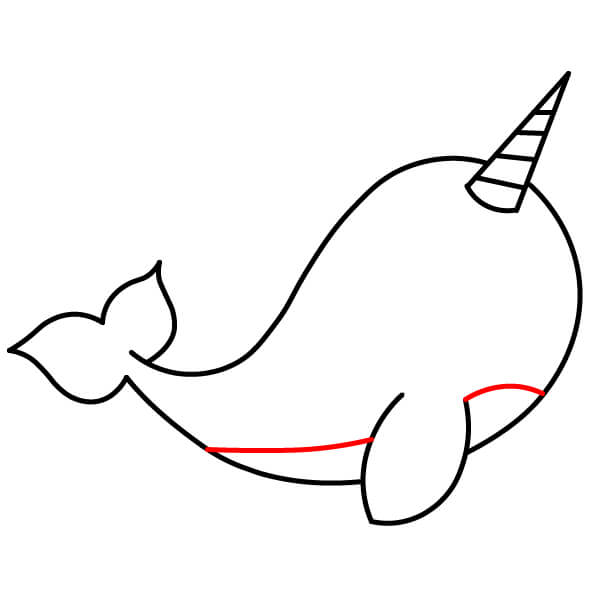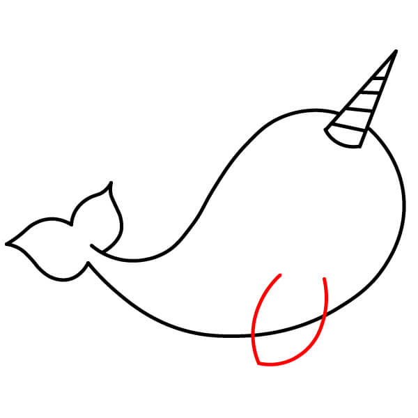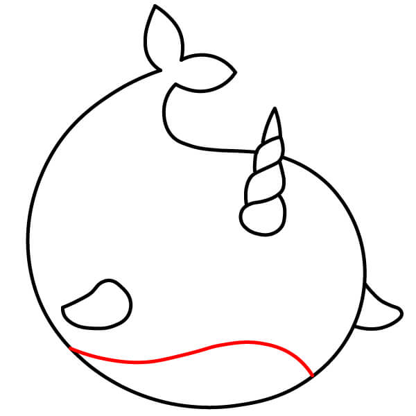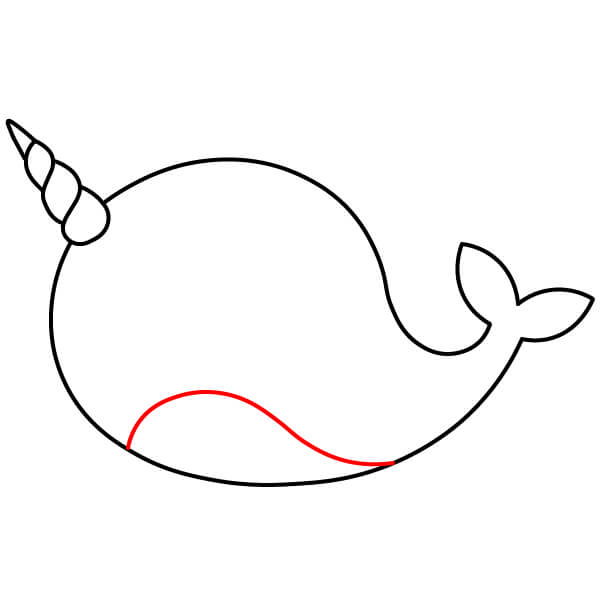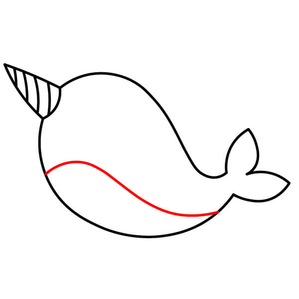 Vẽ một đường cong để phân tách phần thân chính và phần bụng của narwhal. Đường này thường bắt đầu gần phía trước cơ thể và kéo cong về phía đuôi.