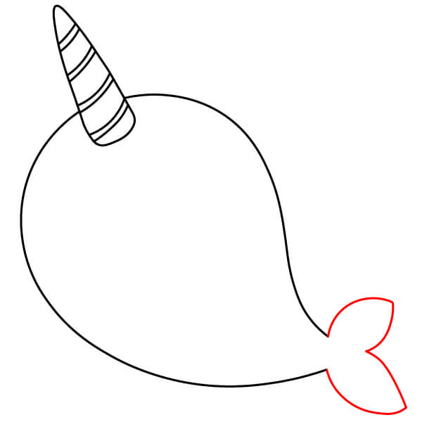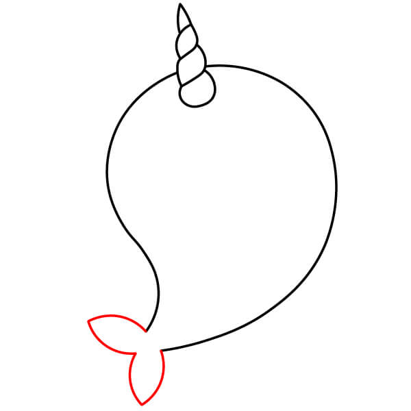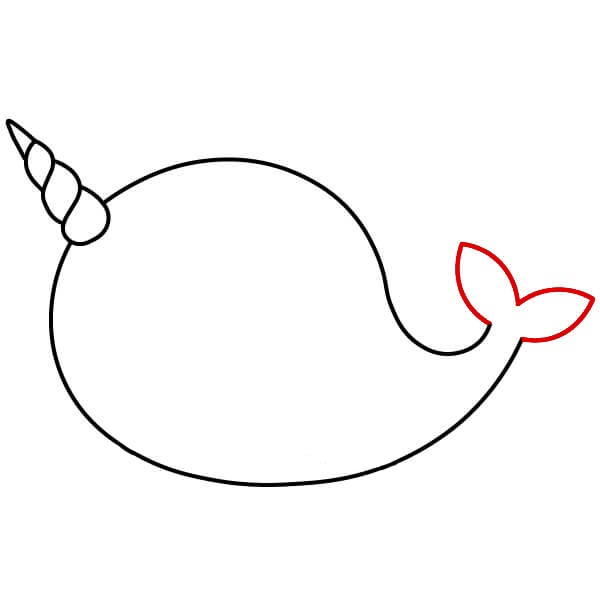 Vẽ vây đuôi bằng cách tạo hai thùy tròn, đối xứng ở cuối thân. Đây là phần đuôi đặc trưng của narwhal.