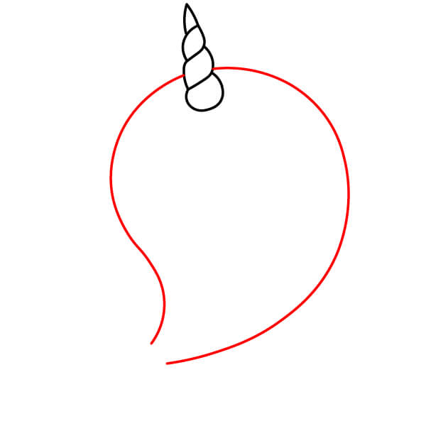 Tiếp theo, phác thảo đường viền cơ thể chính, bao gồm phần đầu và đường cong của thân. Bắt đầu từ gốc chiếc sừng, uốn cong xuống dưới tạo thành hình tròn, rồi nối vào phần đầu của đuôi.