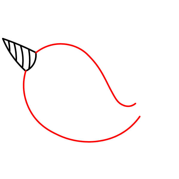 Bước đầu tiên là vẽ chiếc sừng của narwhal. Nó có hình dạng giống sừng kỳ lân với dạng hình nón.