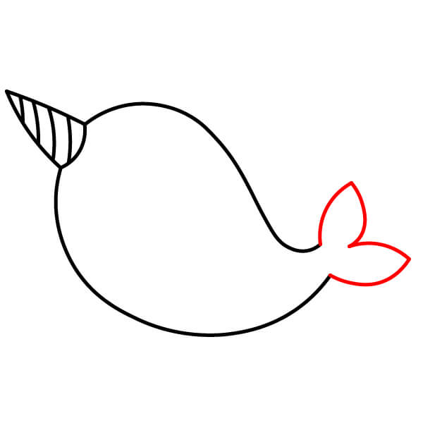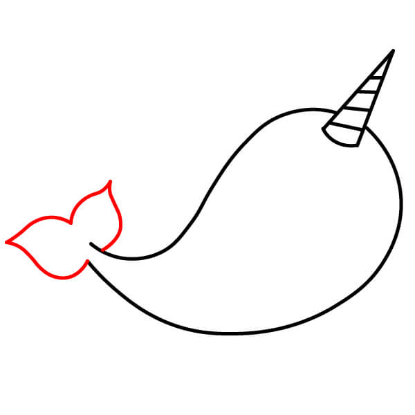 Bây giờ, vẽ vây đuôi. Narwhal có chiếc đuôi đặc trưng chia thành hai thùy, giống như đuôi cá.