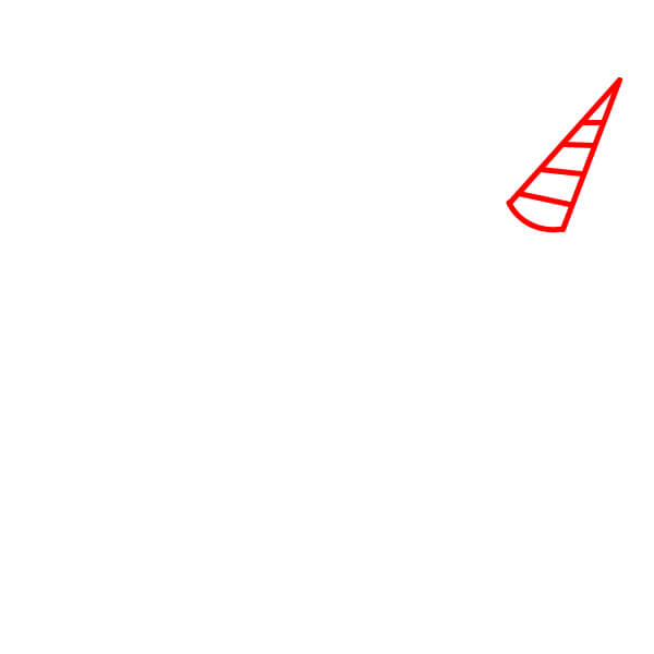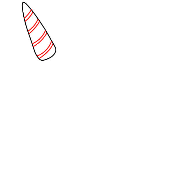 Bắt đầu bằng cách vẽ chiếc sừng đặc trưng của narwhal. Nó có dạng hình nón với các sọc ngang, tạo cảm giác xoắn.