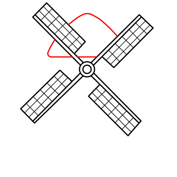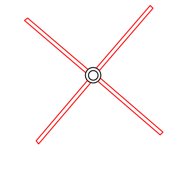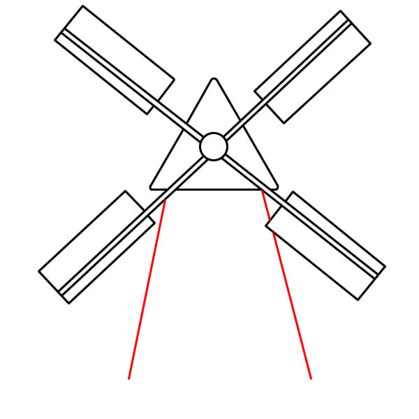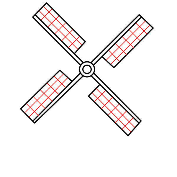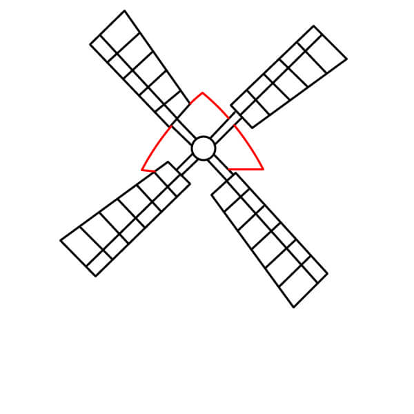 Vẽ bốn hình chữ nhật dài, kéo dài từ phần trung tâm, tạo thành cánh buồm của cối xay gió.