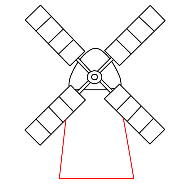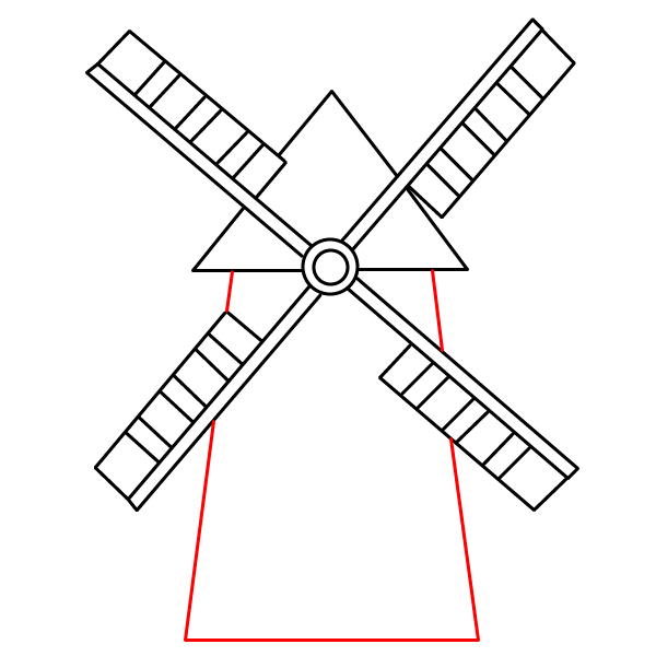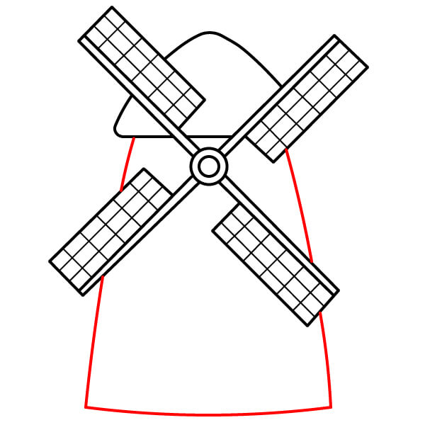 Phác thảo đường viền thân chính của cối xay gió, bắt đầu từ các cạnh của hình tam giác và kéo dài xuống dưới theo hình thang hơi cong.