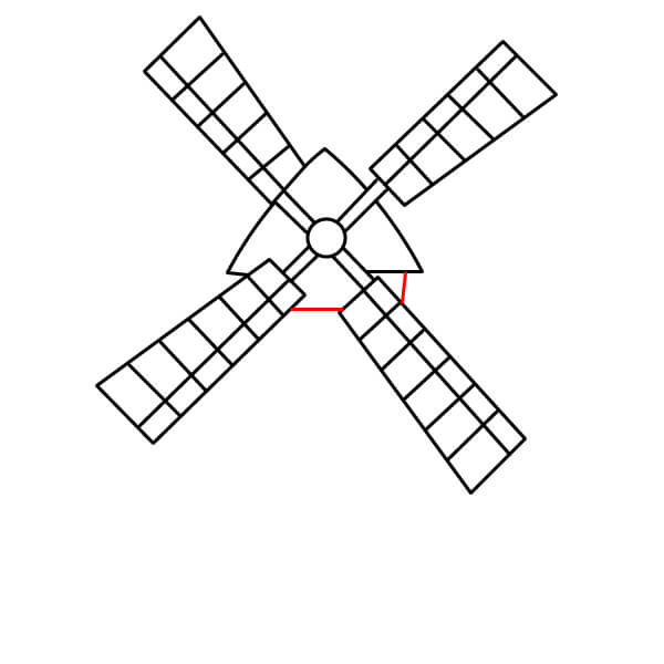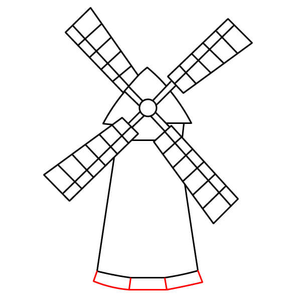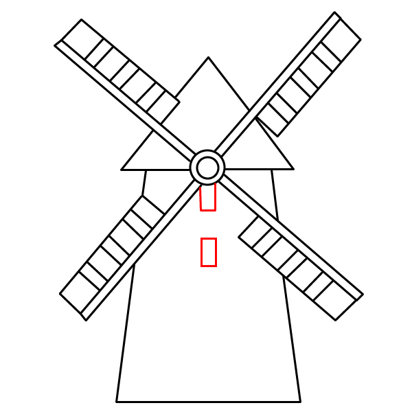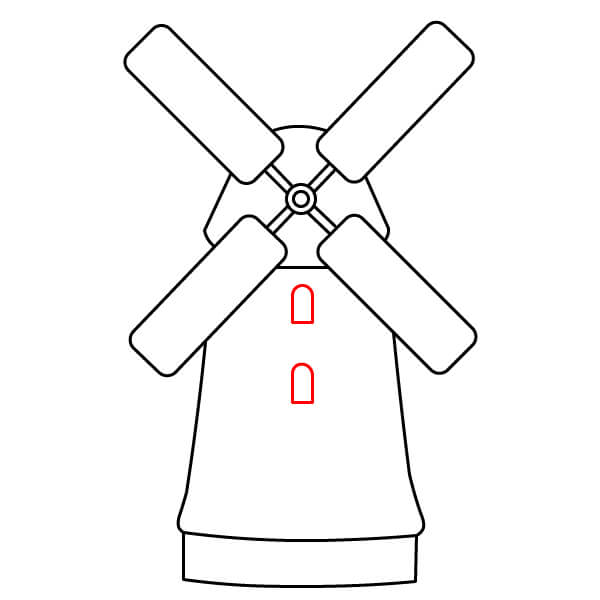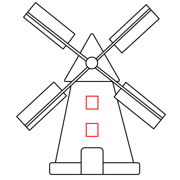 Thêm hai đường viền hình chữ nhật nhỏ ở phần trên của thân cối xay gió.