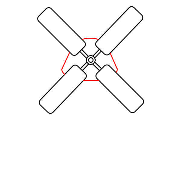 Vẽ các đường thẳng ngắn để chia cánh quạt thành nhiều phần.
