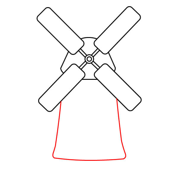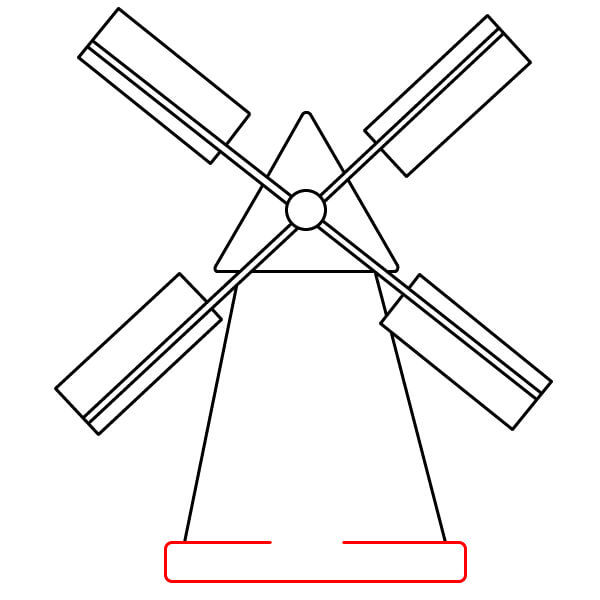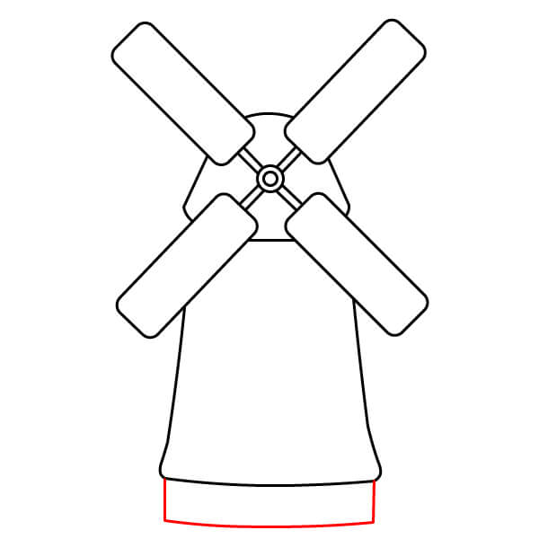 Thêm một đế ở dưới thân cối xay gió. Đế bao gồm một đường cong ở dưới cùng và hai đường thẳng đứng ngắn ở mỗi bên.