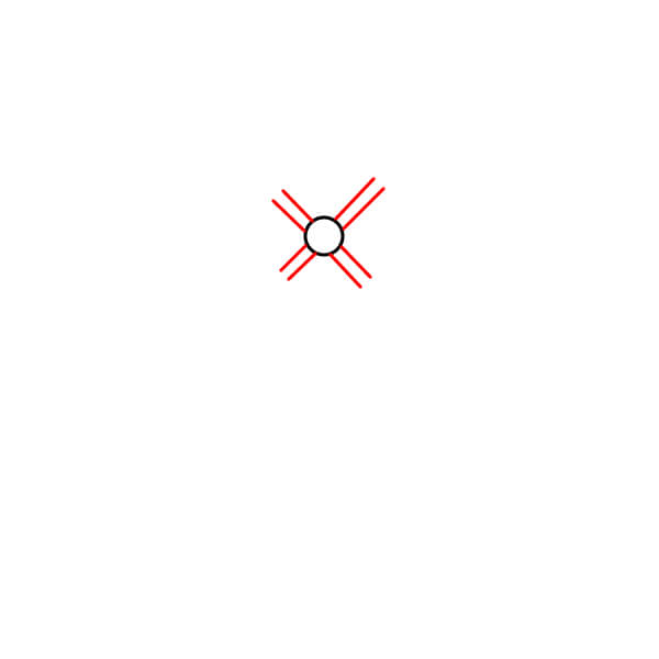 Thêm các đoạn thẳng ngắn vẽ ra ngoài từ các vòng tròn ở giữa, tạo thành chữ ‘X’.