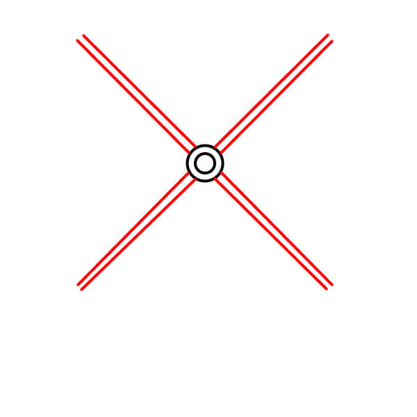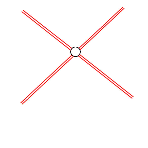 Vẽ bốn cặp đường thẳng song song, kéo dài ra ngoài từ hình tròn trung tâm để tạo thành hình chữ ‘X’.