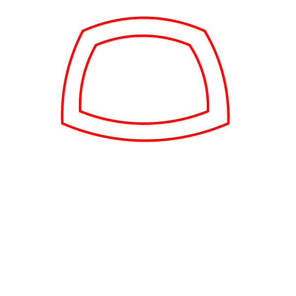 Vẽ một hình thang bo tròn lớn làm khung ngoài của đầu. Bên trong hình đó, vẽ một đường viền nhỏ hơn với hình dạng tương tự để tạo thành khu vực màn hình hiển thị.