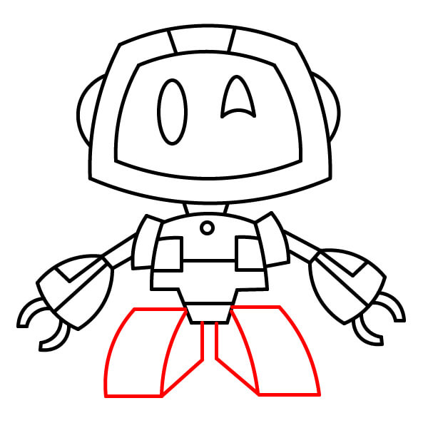 Vẽ hai chân lớn cong kéo xuống từ phần dưới của thân, trông giống những chân dạng khối và có nhiều đoạn.