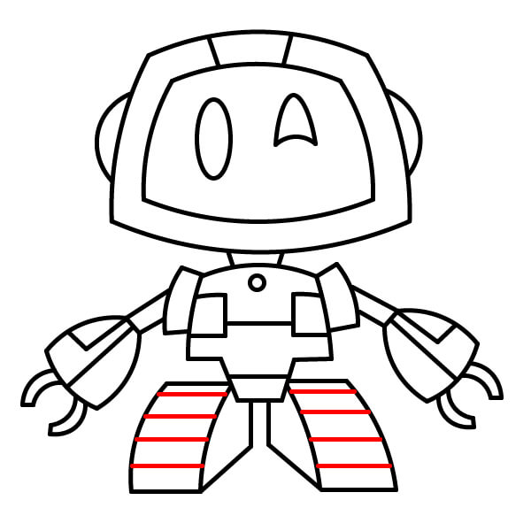 Trên mỗi chân, vẽ ba đường ngang trên phần rộng của chân để tạo họa tiết bánh xích giống xe tăng.