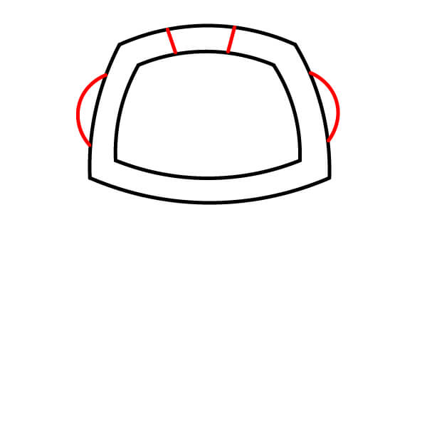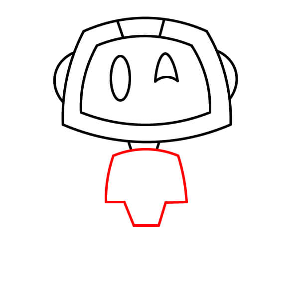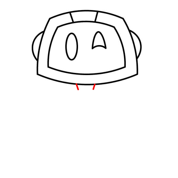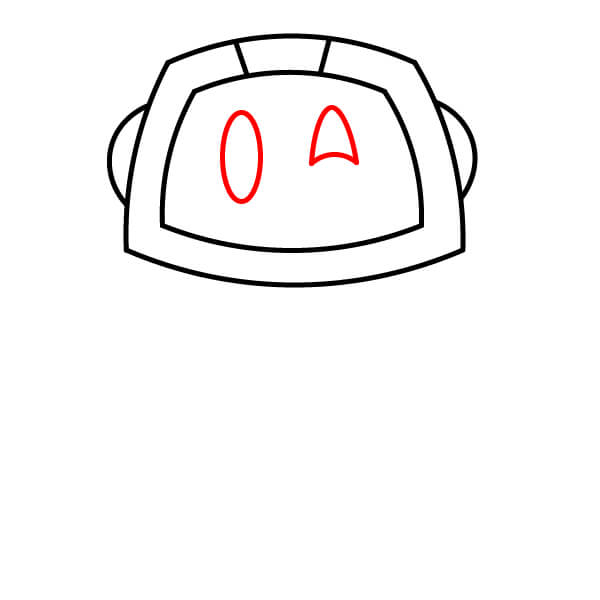 Vẽ hai đường cong nhỏ ở phần trên chính giữa của đầu, nối giữa khung ngoài và khung trong. Sau đó vẽ hai hình cong nhỏ ở hai bên đầu để làm tai hoặc loa.
