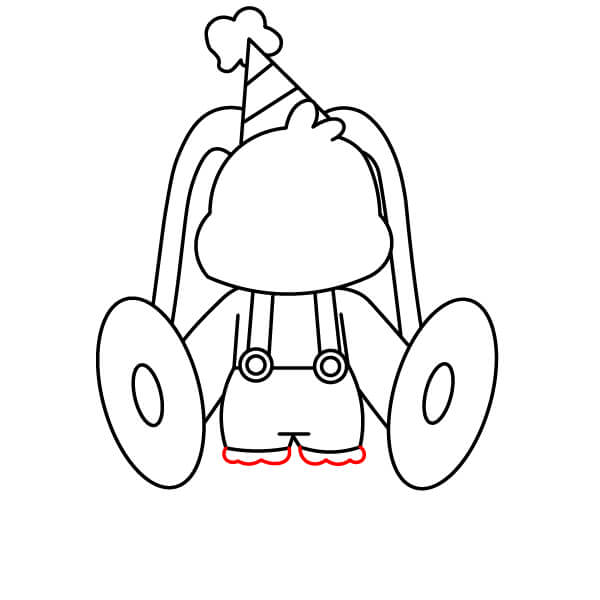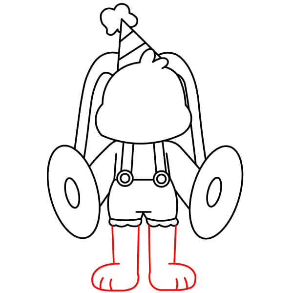 Vẽ hai chân dài kéo xuống từ quần. Ở cuối mỗi chân, vẽ bàn chân lớn bo tròn và thêm ba ngón chân nhỏ.