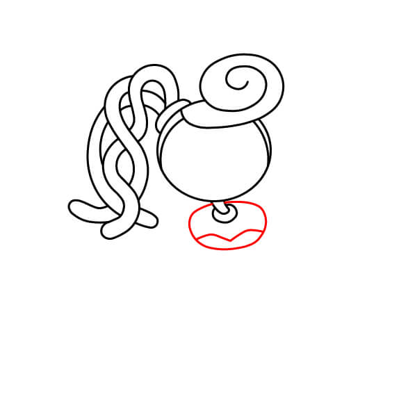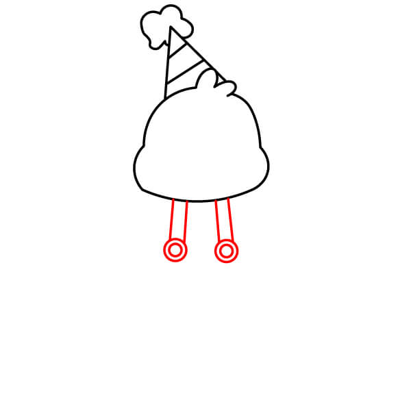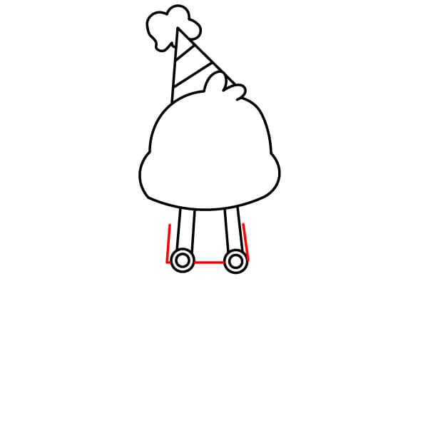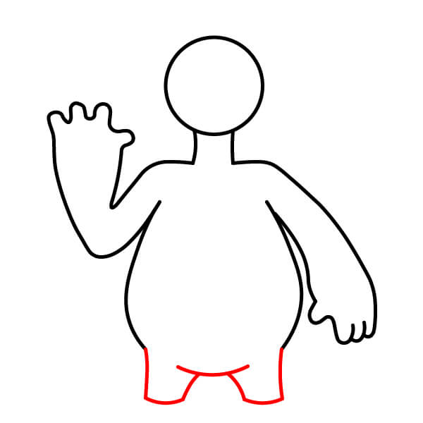 Vẽ hai chân ngắn và khá rộng ở phần dưới của thân. Ở giữa hai chân có một chỗ lõm nhẹ nơi chúng gặp nhau.