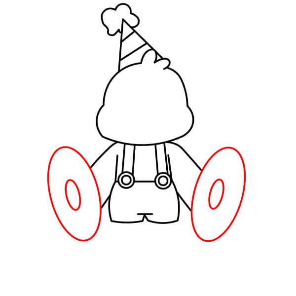 Vẽ hai hình oval lớn ở hai bên cơ thể để làm chũm chọe. Bên trong mỗi hình oval lớn, vẽ một oval nhỏ hơn để thể hiện phần tay cầm hoặc lỗ ở giữa.