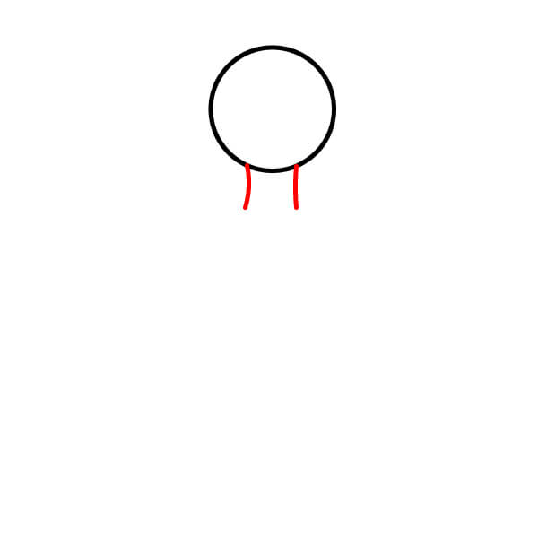Vẽ hai đường thẳng đứng ngắn kéo xuống từ phần dưới của hình tròn để tạo thành cổ.