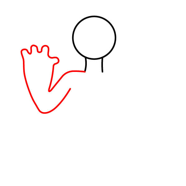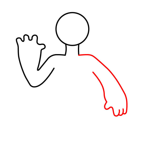 Vẽ cánh tay phải (ở phía bên trái của hình) đưa ra ngoài và hướng xuống dưới. Cánh tay này nên khá dày và kết thúc bằng bàn tay có các gợn cong tương tự để tạo cảm giác mềm như bột.