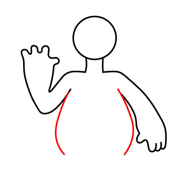 Vẽ hai đường cong lớn hướng ra ngoài bắt đầu từ vai hoặc phần gốc cổ kéo xuống để tạo thành thân tròn, mềm như bột.
