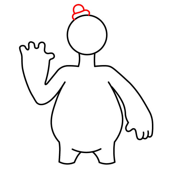 Vẽ cánh tay trái (ở phía bên phải của hình) đưa ra ngoài và cong lên trên. Ở cuối tay, vẽ bàn tay với bốn gợn nhỏ giống ngón tay để thể hiện kết cấu mềm như bột. Cánh tay này trông như đang vẫy.