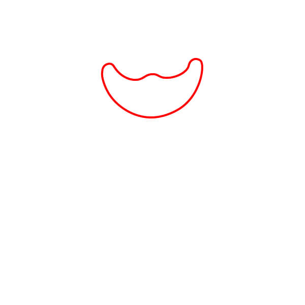 Bắt đầu bằng cách vẽ một hình cong lớn giống hạt đậu để tạo phần bên trong của miệng/khuôn mặt đang mở của Huggy Wuggy. Phần trên nên có một chỗ lõm nhẹ ở chính giữa.