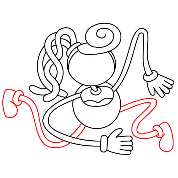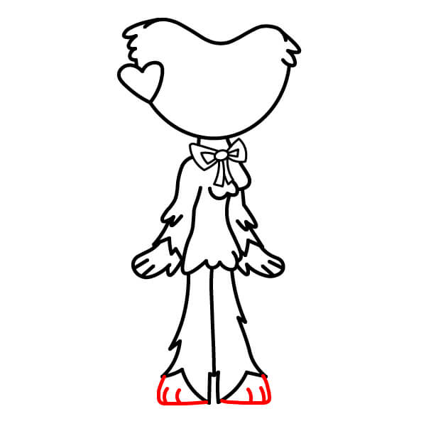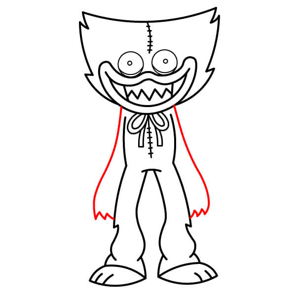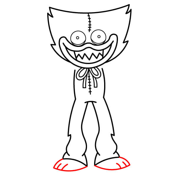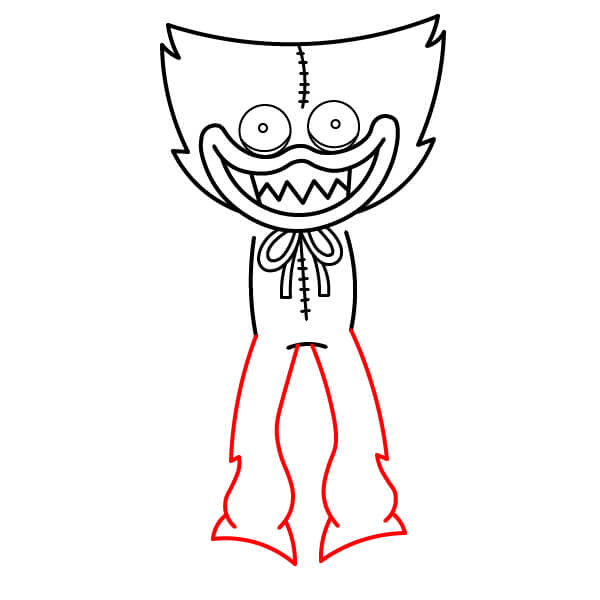 Từ phần dưới của thân, vẽ các đường viền chân dài hơi lượn sóng. Chân của Huggy Wuggy nên rộng hơn ở phần gần bàn chân và tách ra ở phía dưới để tạo thành hai chân.