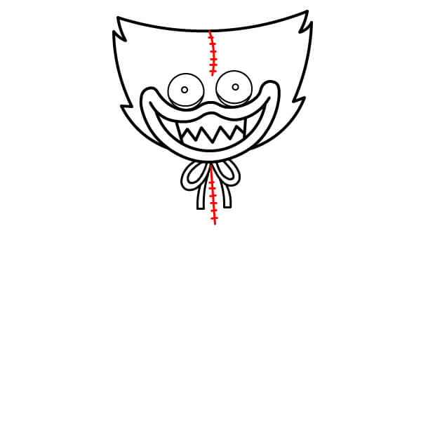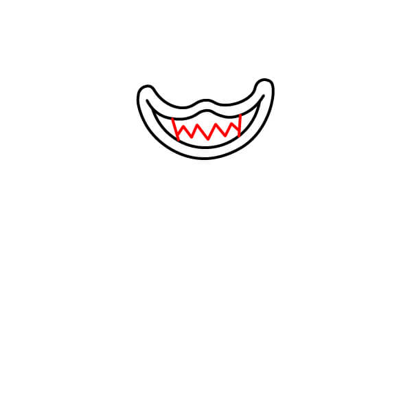 Bên trong miệng, dọc theo đường cong phía dưới, vẽ một hàng đường zigzag sắc nhọn để tạo thành những chiếc răng đáng sợ.