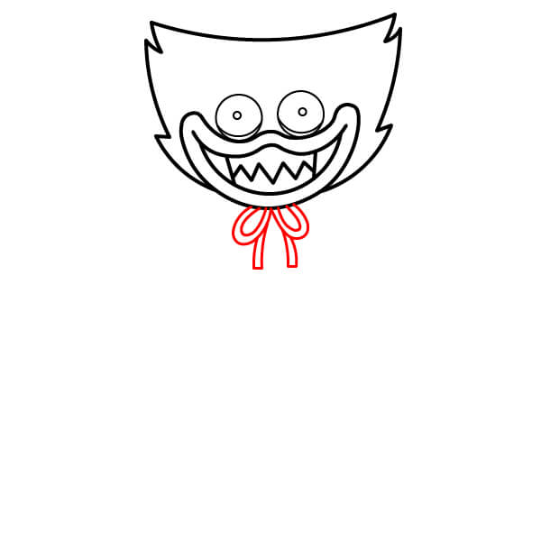 Bên dưới đầu, vẽ một hình ruy băng hoặc nơ để làm nơ cổ.