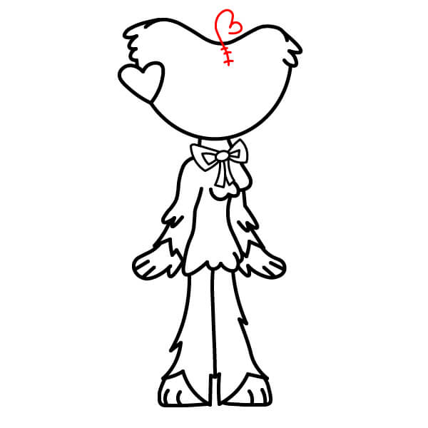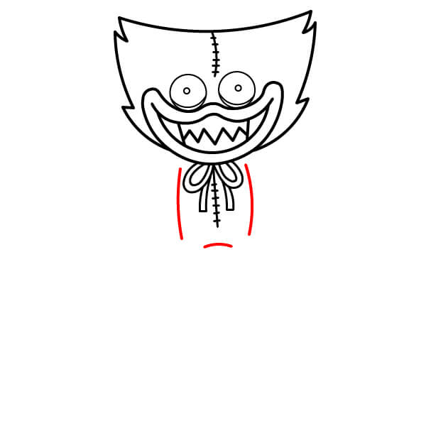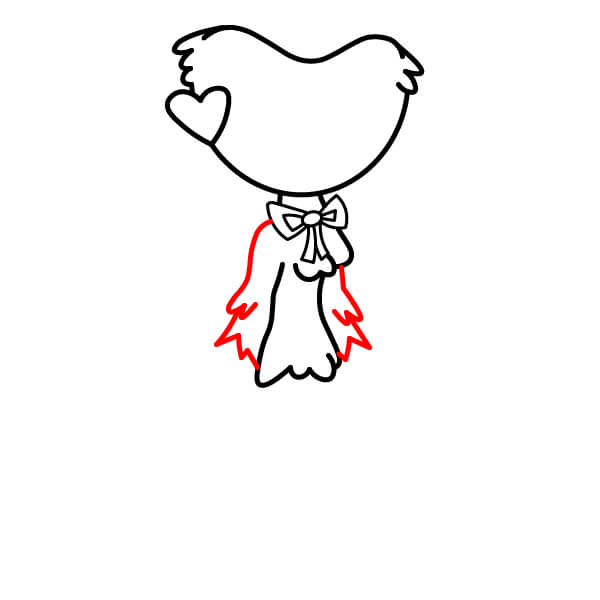 Vẽ hai đường cong ngắn kéo xuống từ chiếc nơ để bắt đầu phần thân.