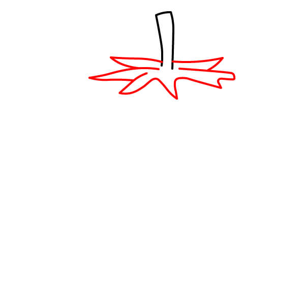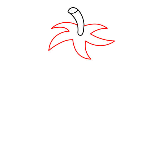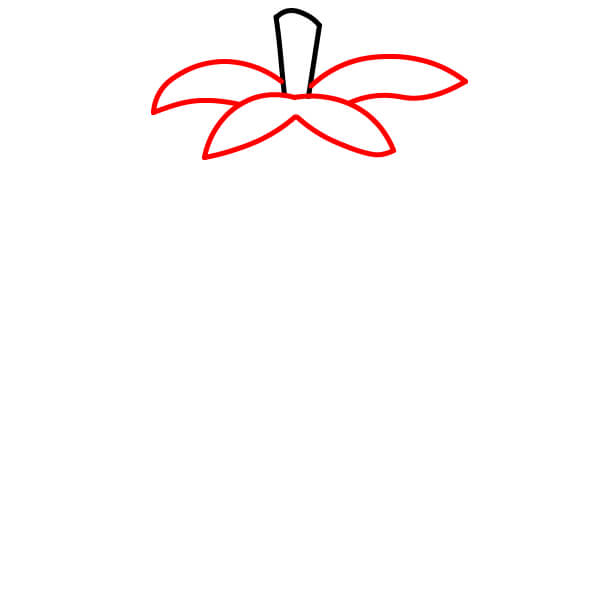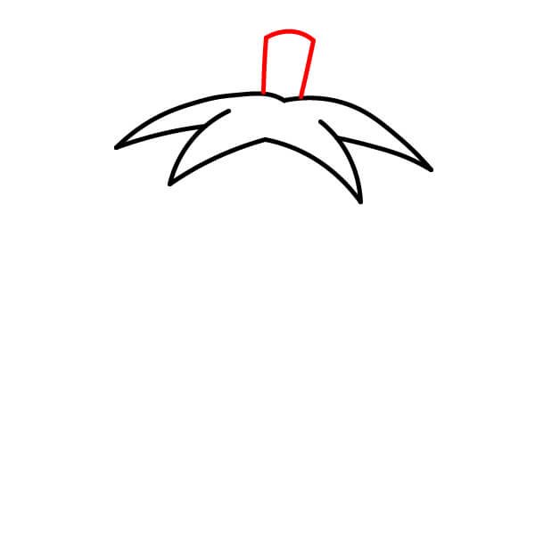 Vẽ một hình chữ nhật cong ngắn phía trên tán lá. Đây sẽ là cuống cà chua.